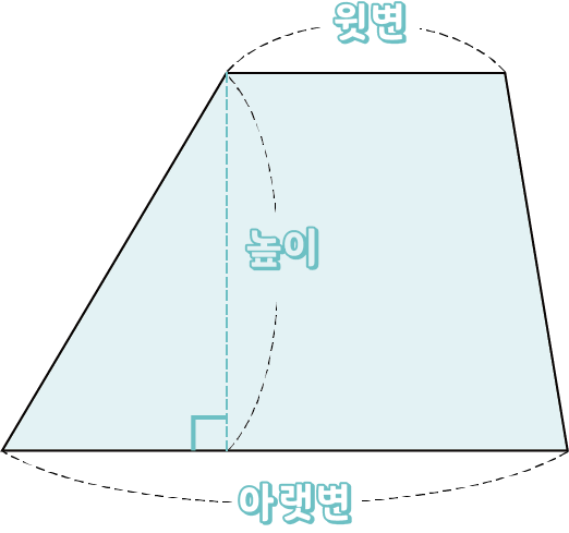 사다리꼴 넓이 = (아랫변 + 윗변) × 높이 ÷ 2