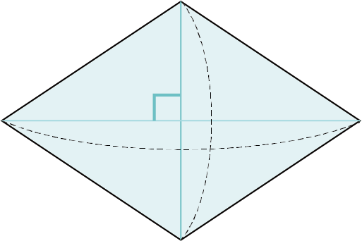 마름모의 넓이 = 한 대각석 × 다른 대각선 ÷ 2